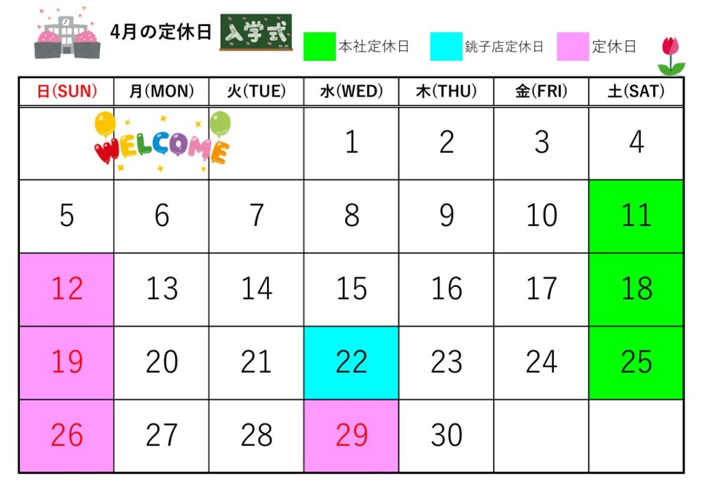 【4月の定休日】